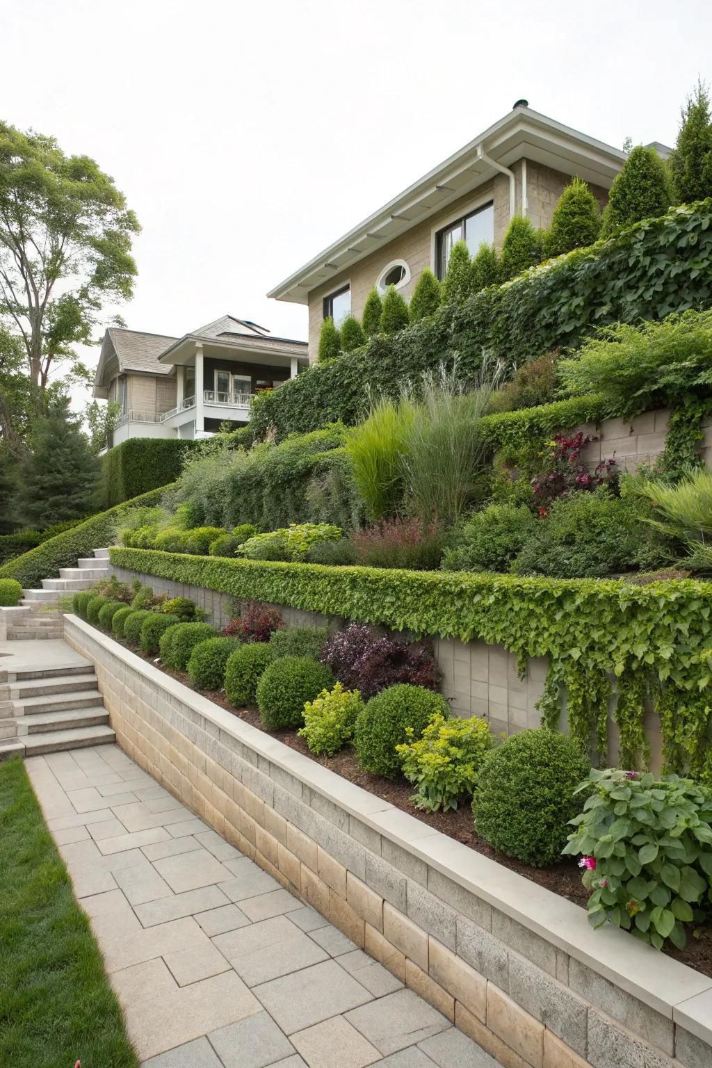 Balance softscape (plants) with hardscape features like retaining walls, decorative boulders, or gravel gardens. These elements add structure, reduce maintenance, and create visual contrast. Consider a dry riverbed for drainage and aesthetic appeal.